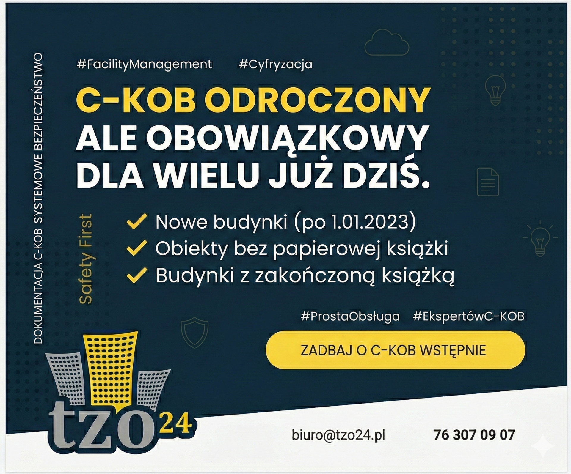 Od lat przygotowujemy się do tej zmiany i aktywnie informujemy o niej rynek. Nadal uważamy, że cyfrowa książka obiektu budowlanego jest kierunkiem właściwym i nieuniknionym. Odroczenie terminu nie zmienia faktu, że obowiązki prawne pozostają. Uporządkowanie dokumentacji technicznej i tak będzie konieczne. Warto więc potraktować C-KOB jako narzędzie, które ułatwia zarządzanie i zwiększa bezpieczeństwo już dziś.